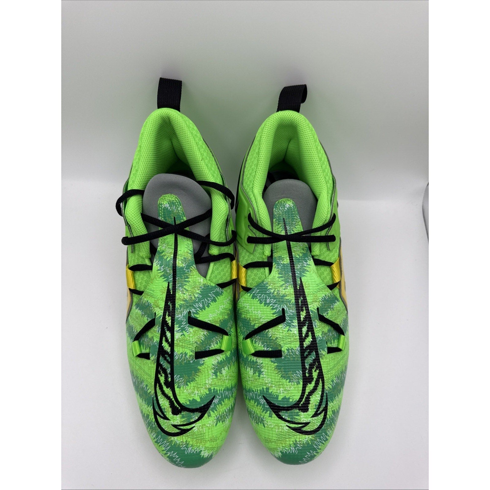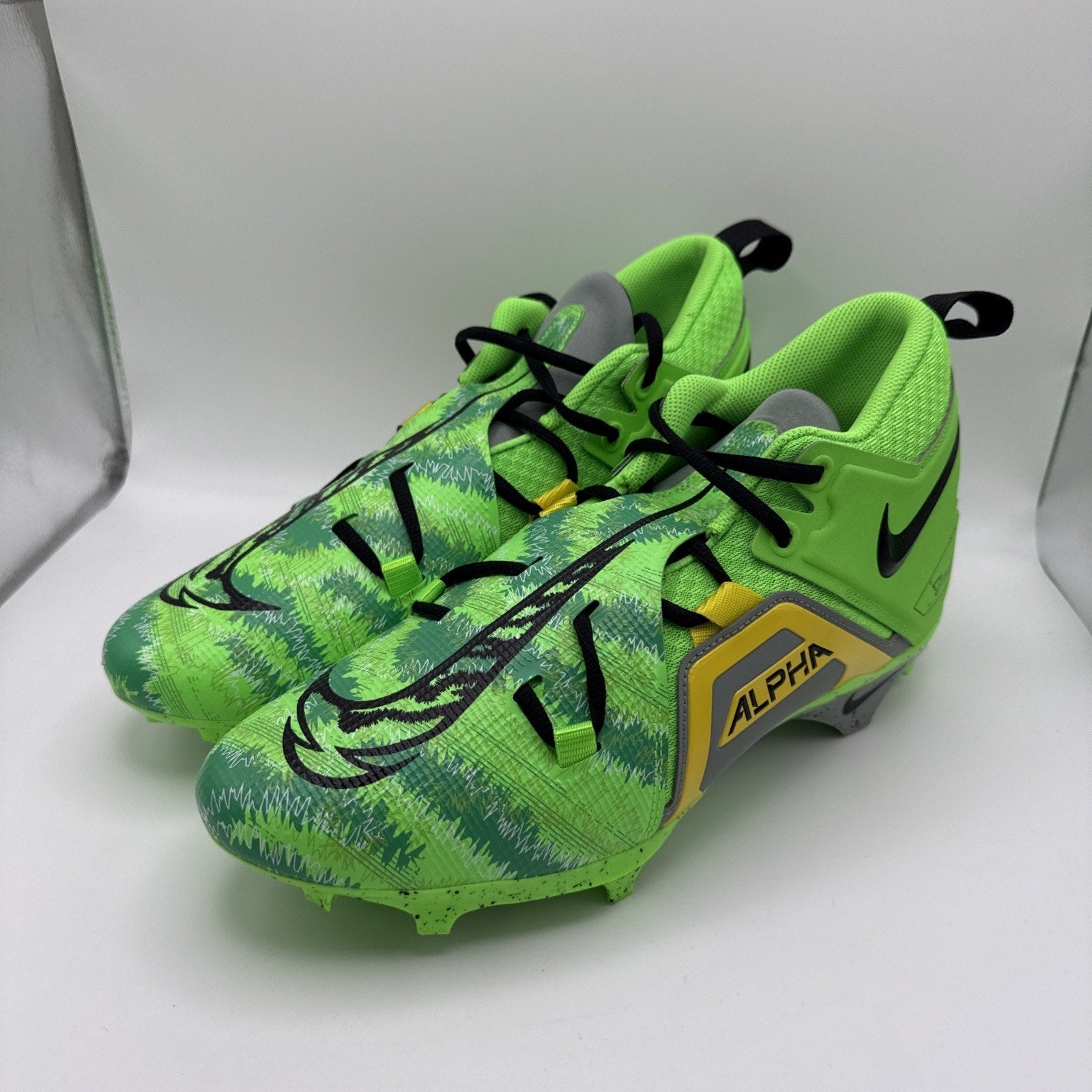 The product is a pair of men's football cleats in size 11.5, featuring the popular Nike Alpha Menace Pro 3 design in a vibrant yellow and green color combination. Made in China, these cleats are specifically designed for football, with a medium width for optimal comfort and performance on the field. With the Nike Football product line, these cleats are sure to provide the quality and durability necessary for competitive play.
