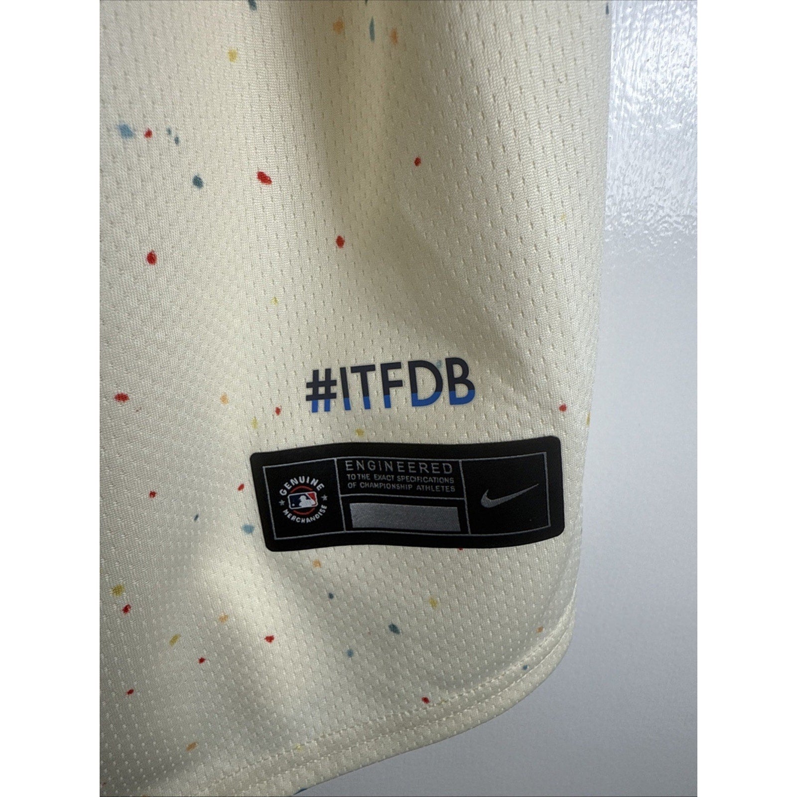 The product is a Mookie Betts Los Angeles Dodgers #50 City Connect Jersey in Youth XL size. This official MLB licensed jersey in beige color features the player's name and number on the back, making it a perfect choice for young baseball fans to show their support. The jersey is designed for boys and is a must-have for any young fan looking to represent their favorite player and team on the field or in the stands.