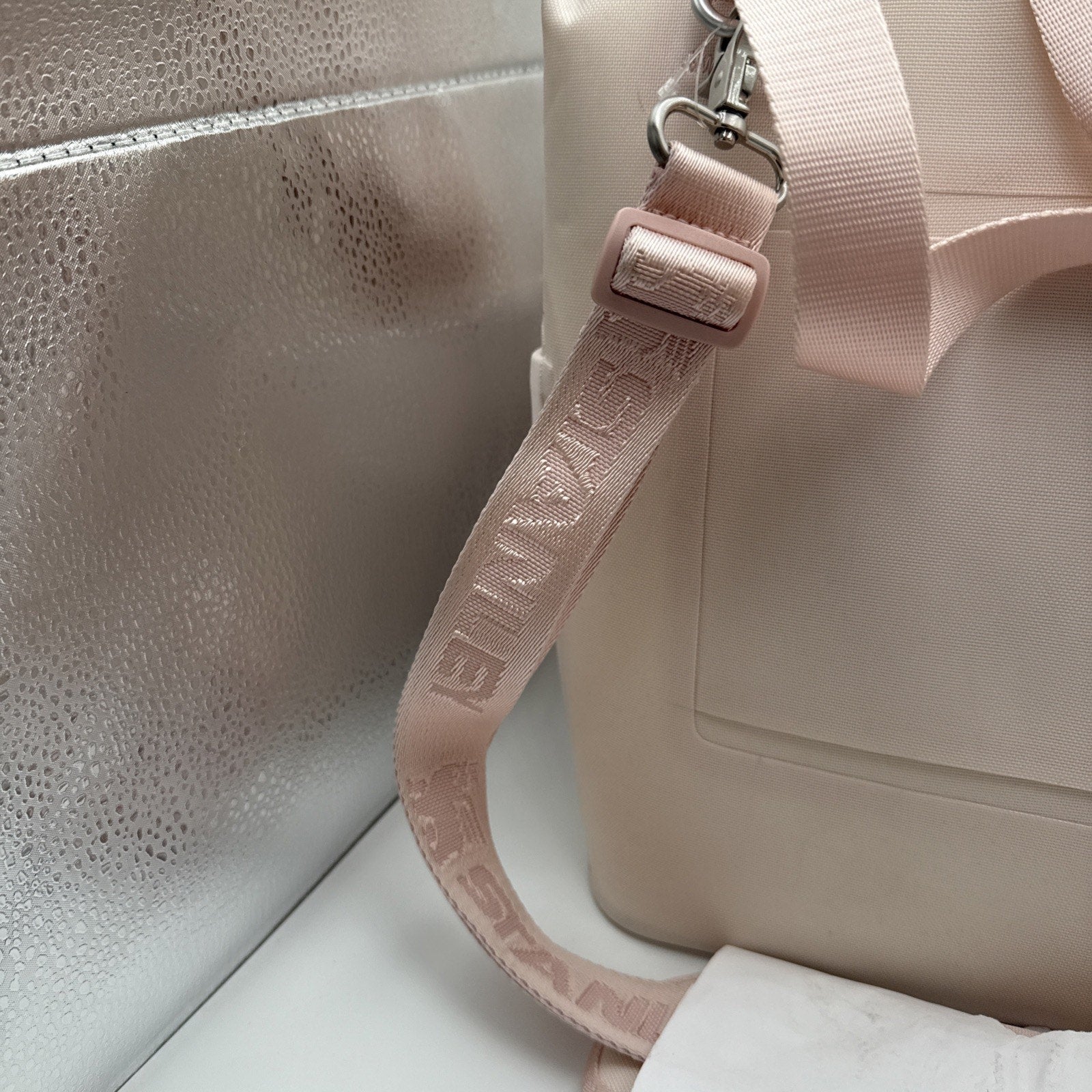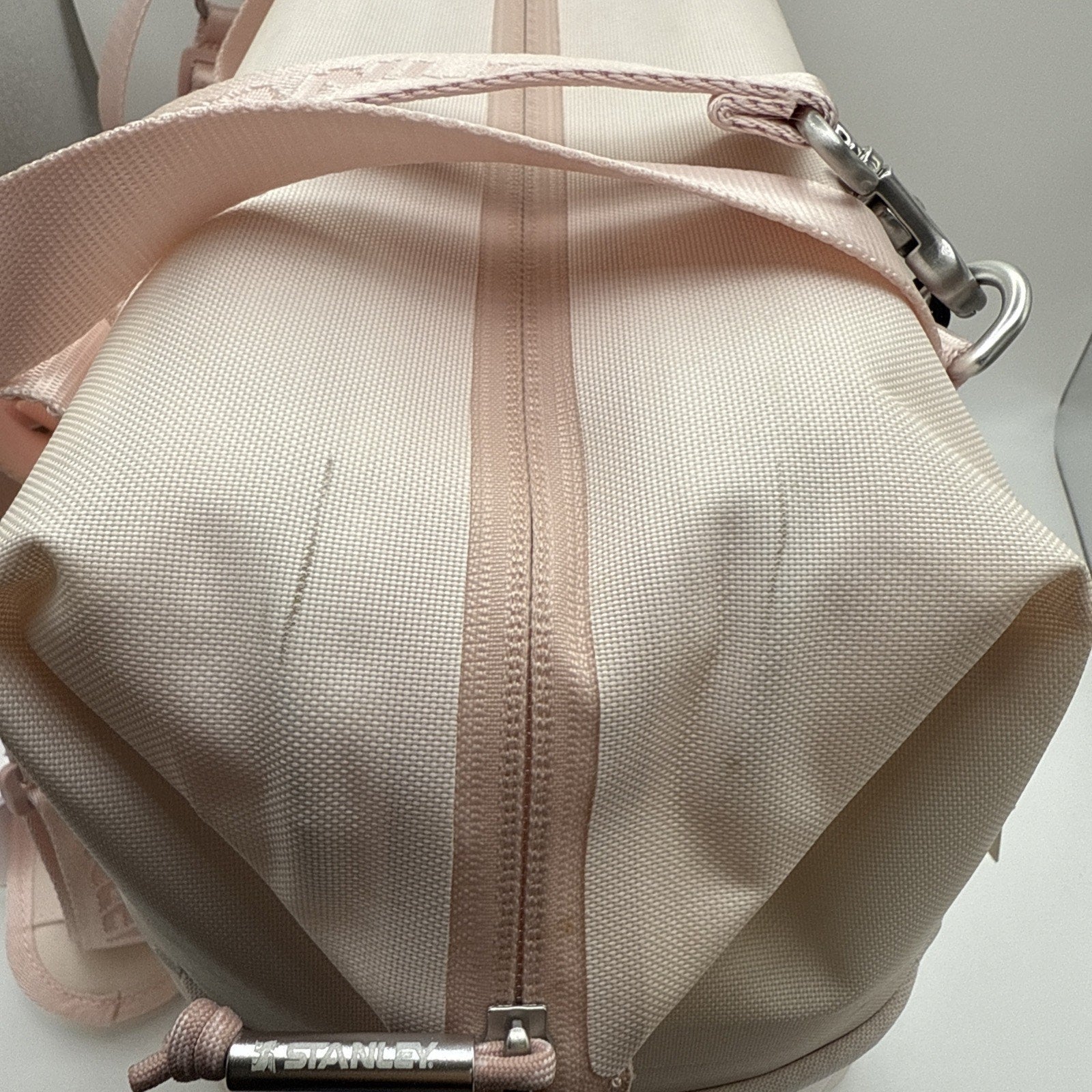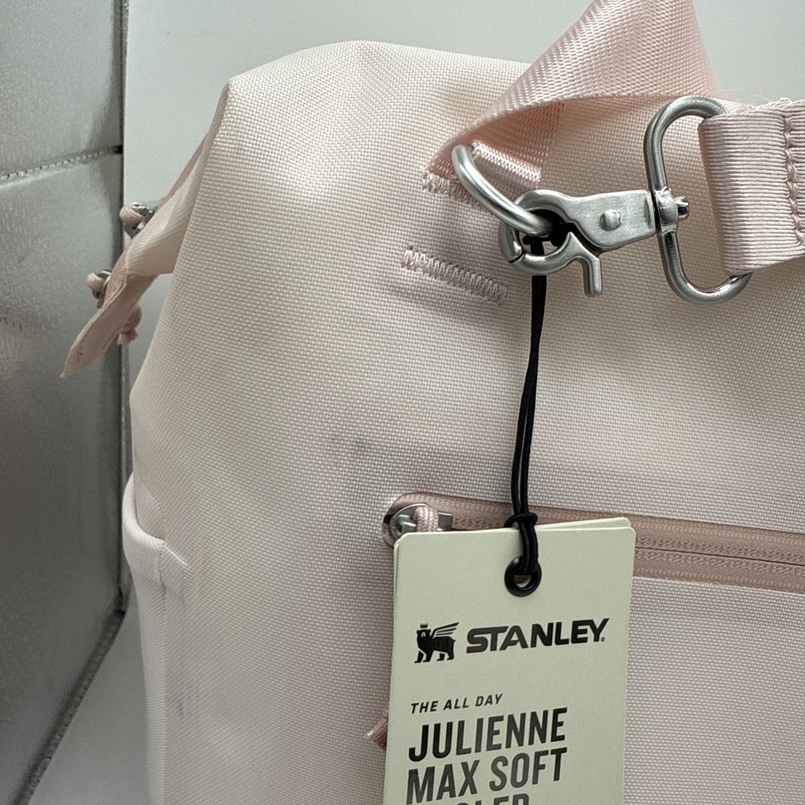 The All Day Julienne Max Cooler in Rose Quartz is a 20 QT (18.9 L) cooler bag made of polyester material by the brand Stanley. It features a shoulder strap and can hold up to 30 cans. With a stylish design and durable construction, this cooler is perfect for outdoor activities and picnics, offering both functionality and convenience. Made in the United States, this cooler is a reliable choice for keeping drinks cool all day long.